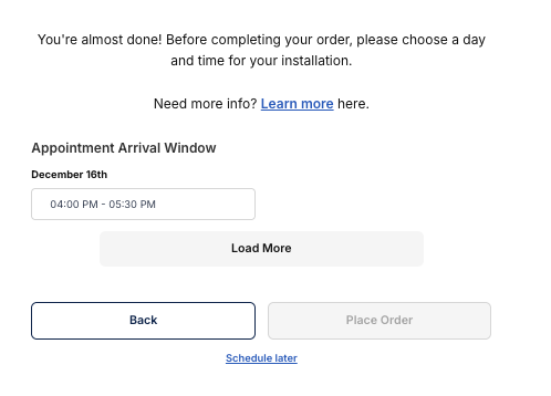 Choose a time window for when you’d like our technician to arrive. You’ll see available time slots for the upcoming days. Once you’ve selected the best time for you, click on “Place Order” to confirm.